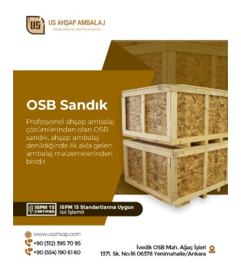 Son derece sağlam ve kaliteli olan OSB sandık, ihracat dostu bir ambalaj malzemesi olarak ihracat firmalarının tercihidir. İngilizce karşılığı “Oriented Strand Board" tur. Yönlendirilmiş yonga levhalar kullanılarak üretilmektedir. Ankara OSB sandık üretici olarak hizmet sunmaya devam eden US Ahşap Ambalaj, ahşap ambalaj malzemelerine alternatif olan OSB sandık çeşitleri için başvurulan bir adrestir.